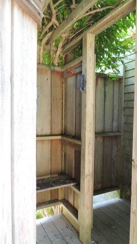 DECK (CUSHIONS NOT SHOWN) AND OUTSIDE SHOWER: