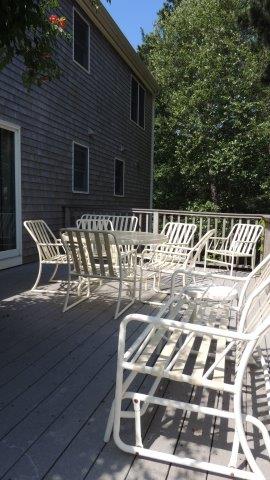 Nice Cape home on a quiet sandy lane nearest to the bayside beaches. Big cathedral ceiling kitchen is definitely a highlight. The a nice deck for private relaxation in the backyard (cushions for the chairs not shown).
