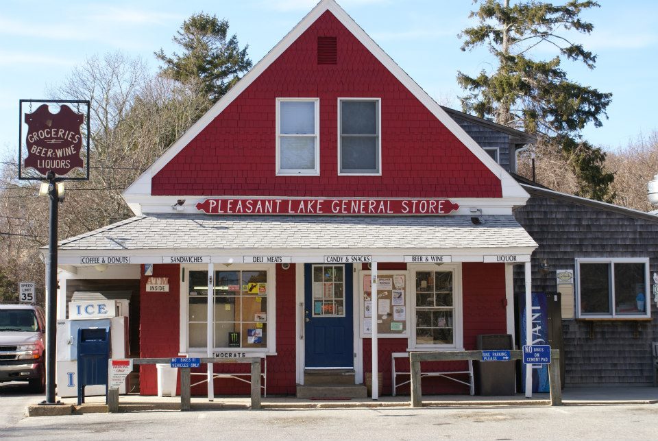 RAIL TRAIL BIKE TRAIL AND THE PIZZA SHARK AT THE PLEASANT LAKE GENERAL STORE